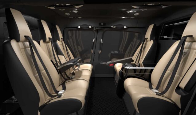 Його салон об ‘ємом 5,78 м³ повністю модульний: VIP-версія з клубними кріслами, конфігурація MEDEVAC з ношами або спеціальна компоновка для інституційних перевезень. Двостулкові двері, великий вантажний відсік і прямий доступ полегшують експлуатацію навіть в екстрених ситуаціях. У версії Designer Series внутрішнє оздоблення може бути налаштоване в п’яти узгоджених палітрах, з рівнем деталізації, характерним для престижних перевезень.